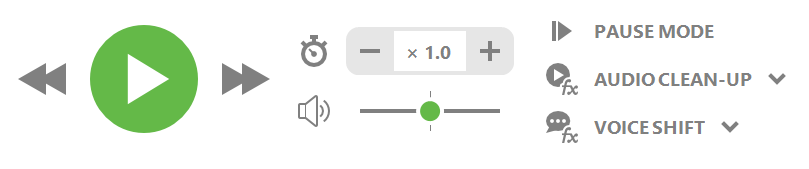 There is also a playback speed control which allows you to speed up and slow down the audio and a slider to change the volume – there may be a slight lag before a change to these controls takes effect. Volume and speed settings along with the Audio Cleanup and Voice Shift options are saved with your file and can be used when you export your audio.